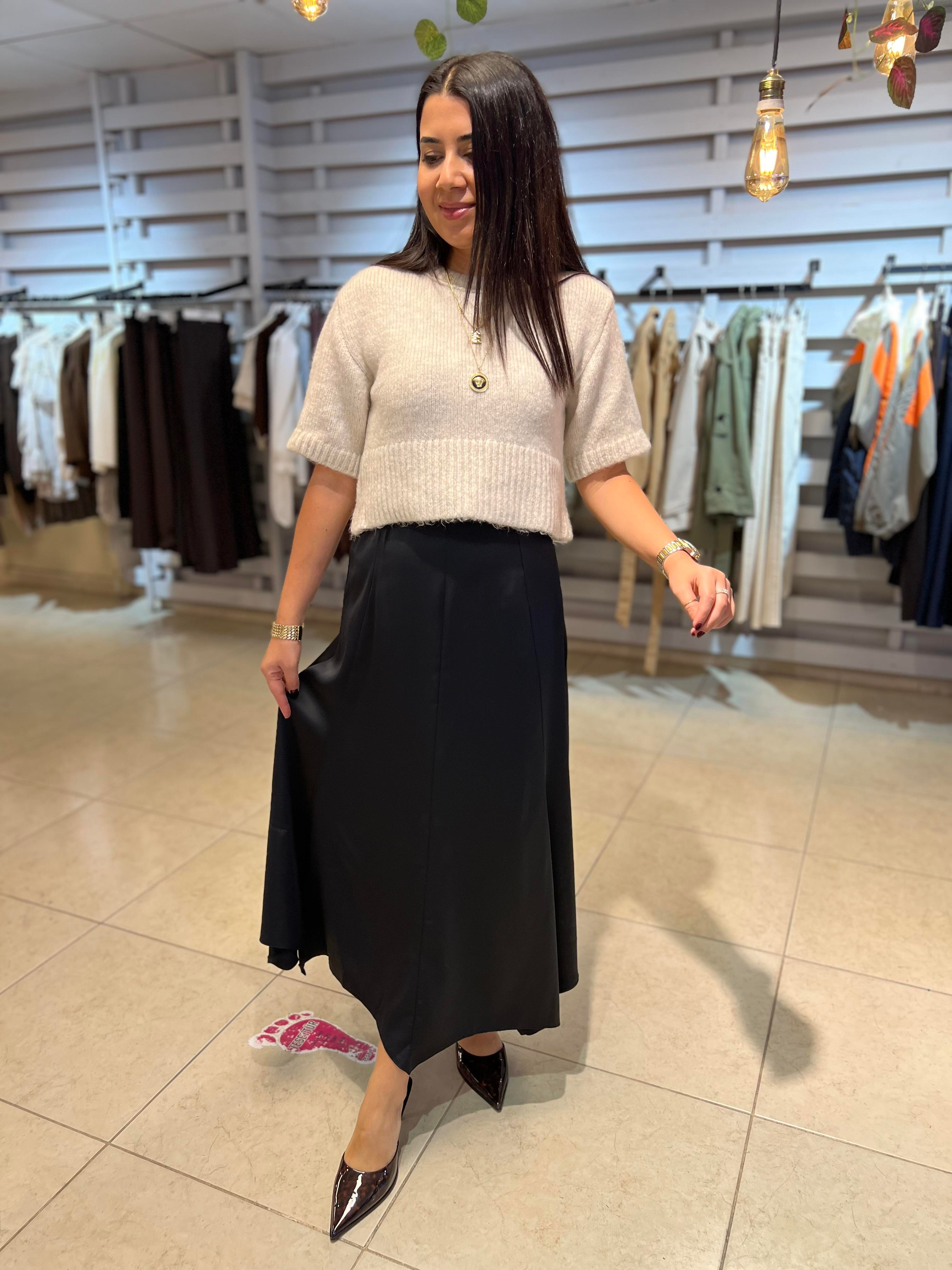 Asimetrik Kesim Saten Etek Siyah (K220213)