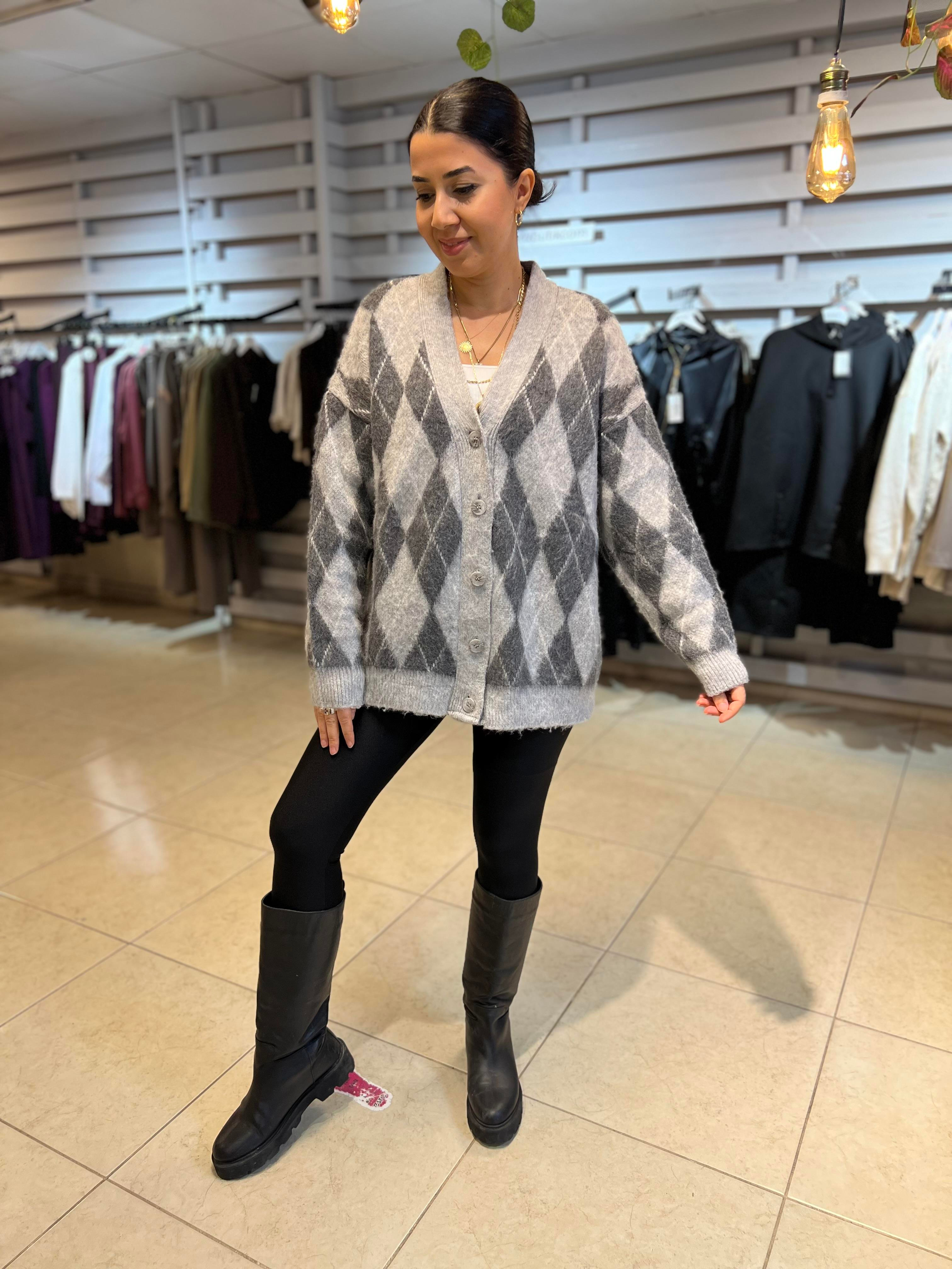 Baklava Desen Yumoş Hırka Gri (k220344)