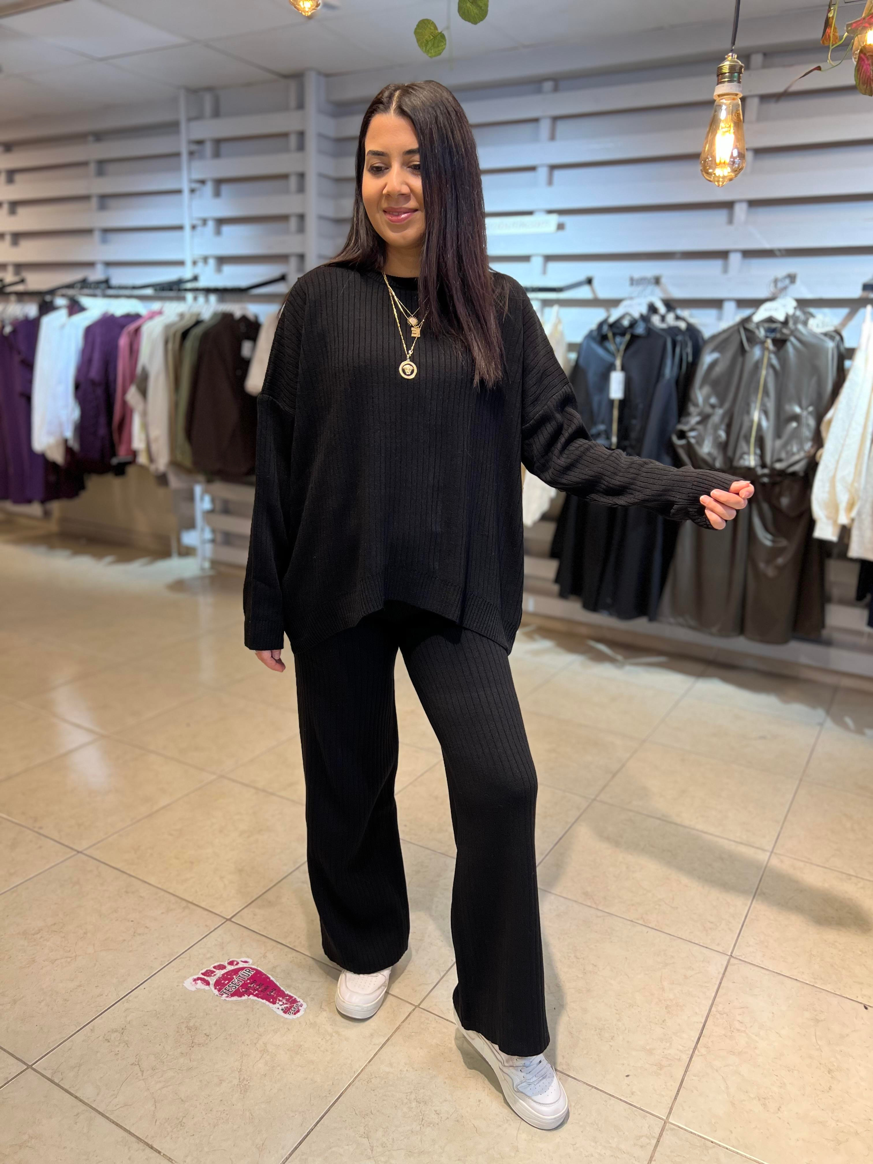 Bisiklet Yaka Triko Takım Siyah
