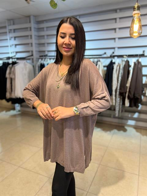 Büyük Beden V yaka Pamuk Salaş Bluz Vizon