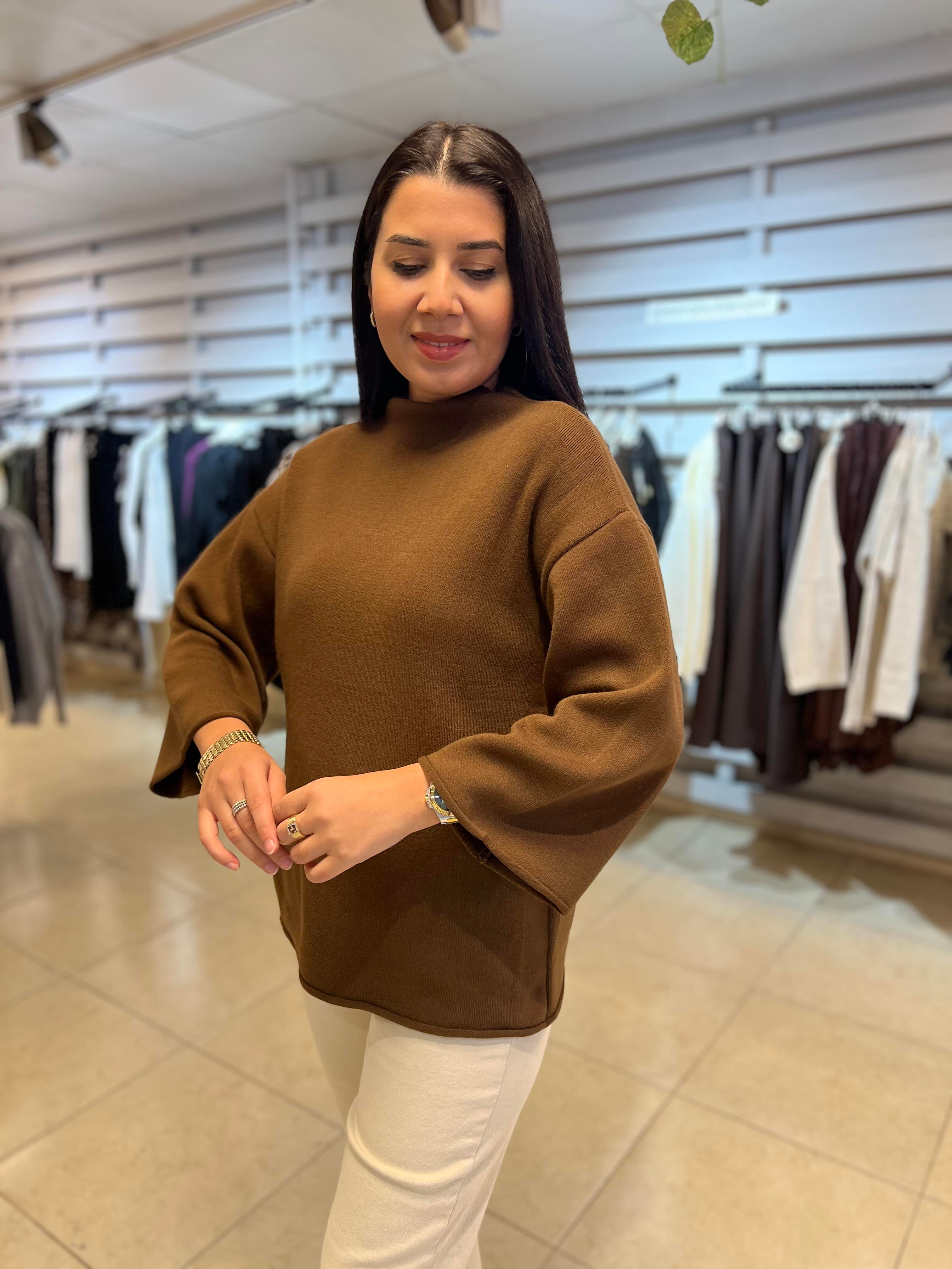 Çelik Örme Yarasa Kol Tiko Kazak Kahverengi