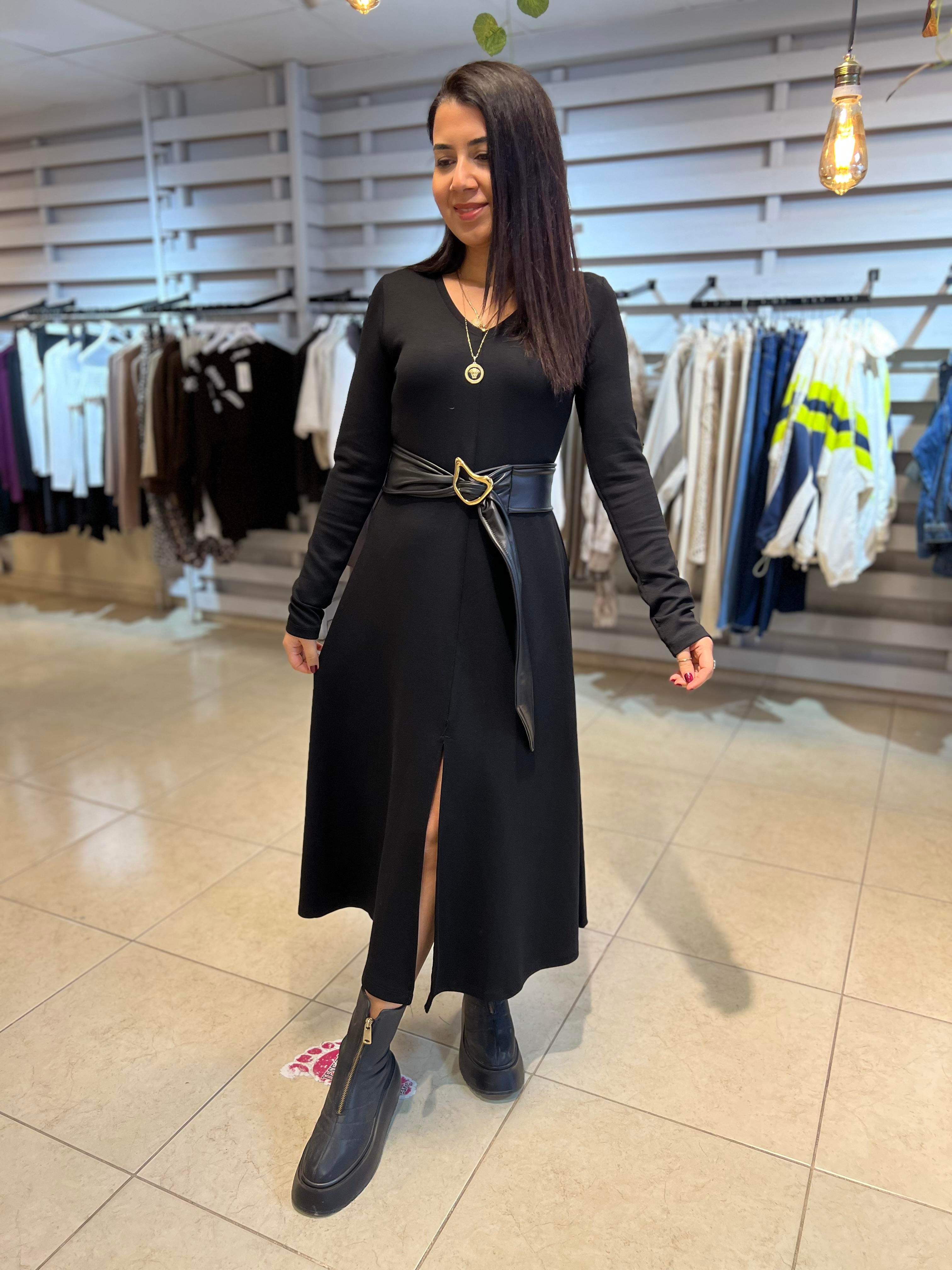 Ürün Kodu: K220200 Ürün adı: Deri Kemerli Modal Yırtmaçlı Elbise