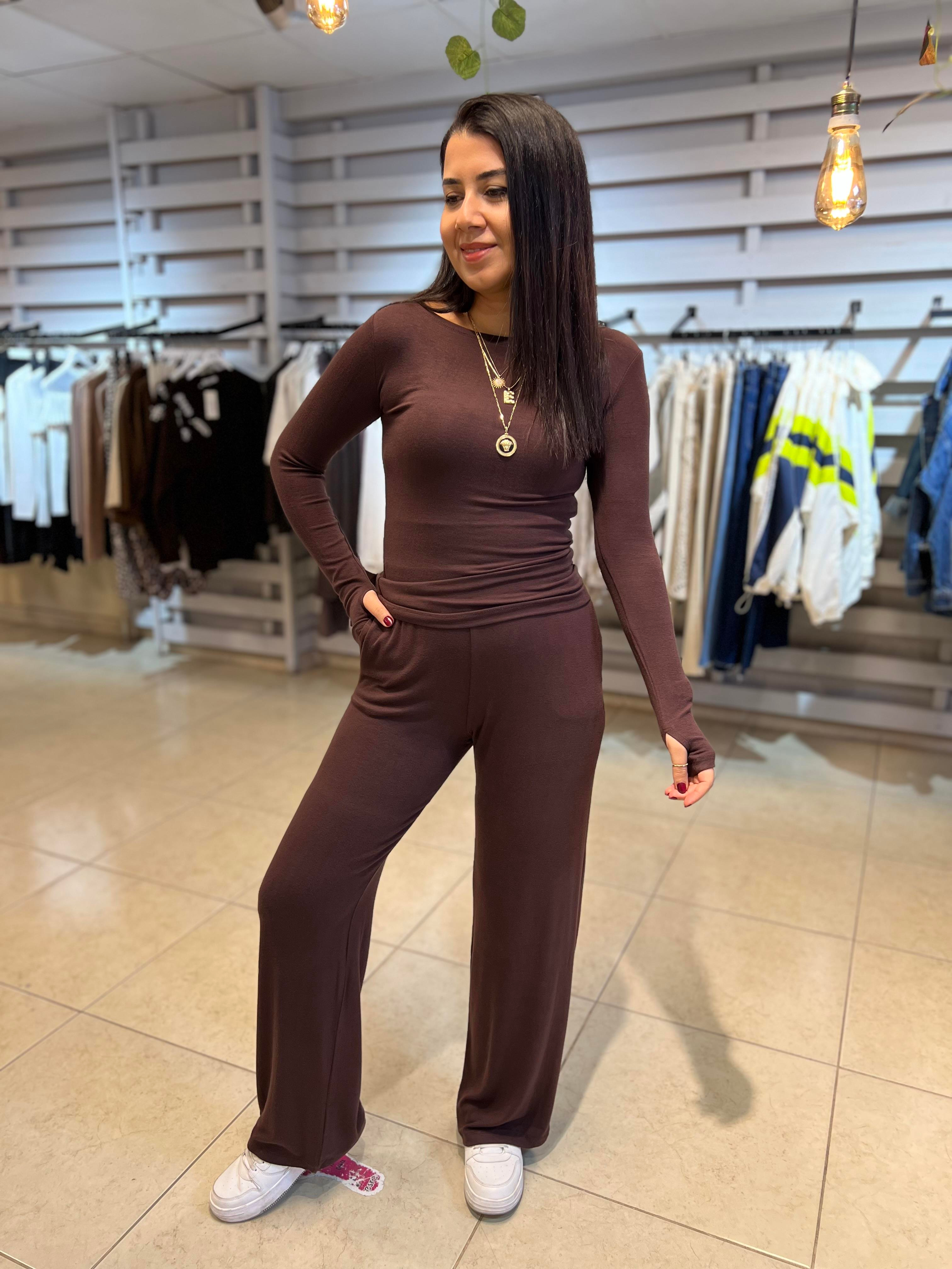 Kayık Yaka Basic Takım Kahverengi (K220258)