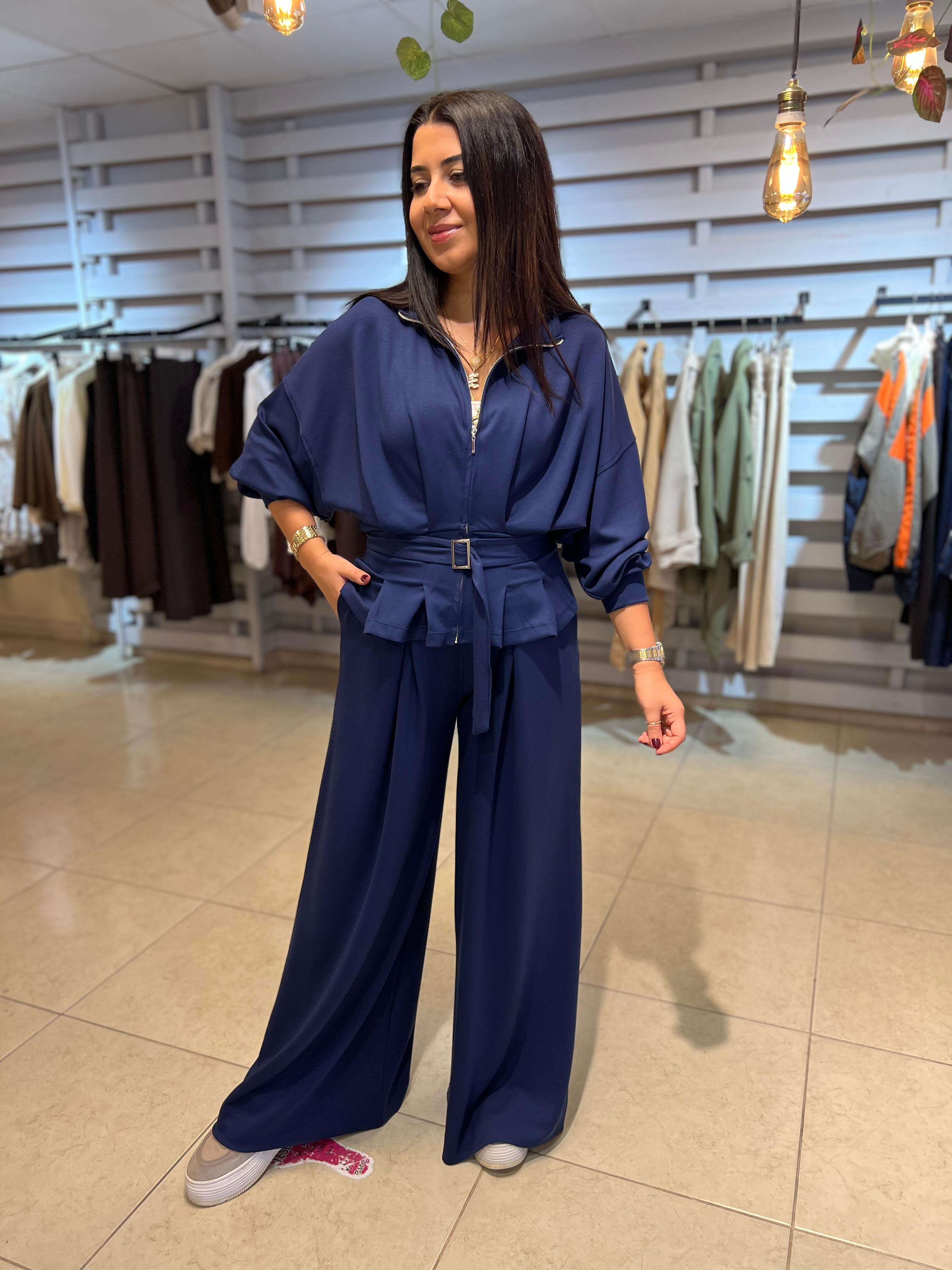 Modal Geniş Paça Kemerli Takım Lacivert (K220257)