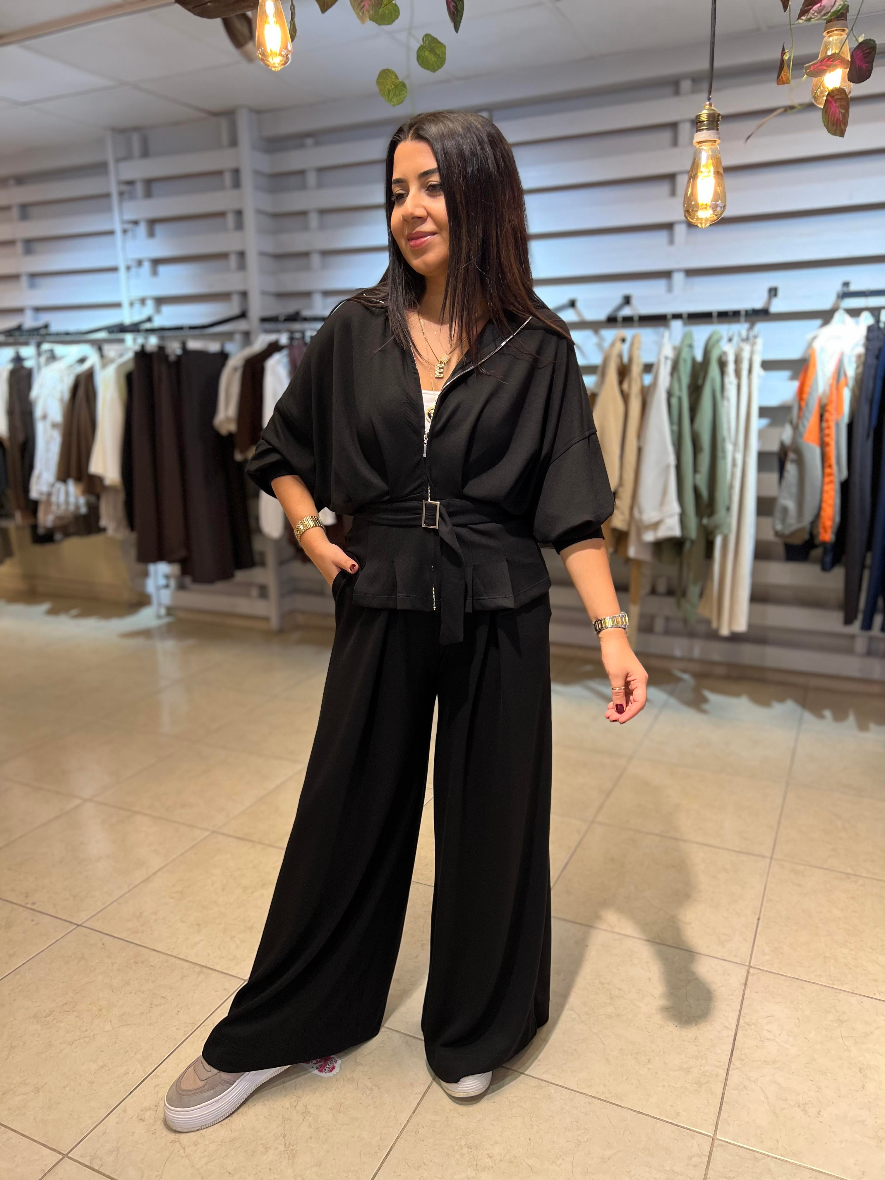 Ürün Kodu: K220257 Ürün adı: Modal Geniş Paça Kemerli Takım