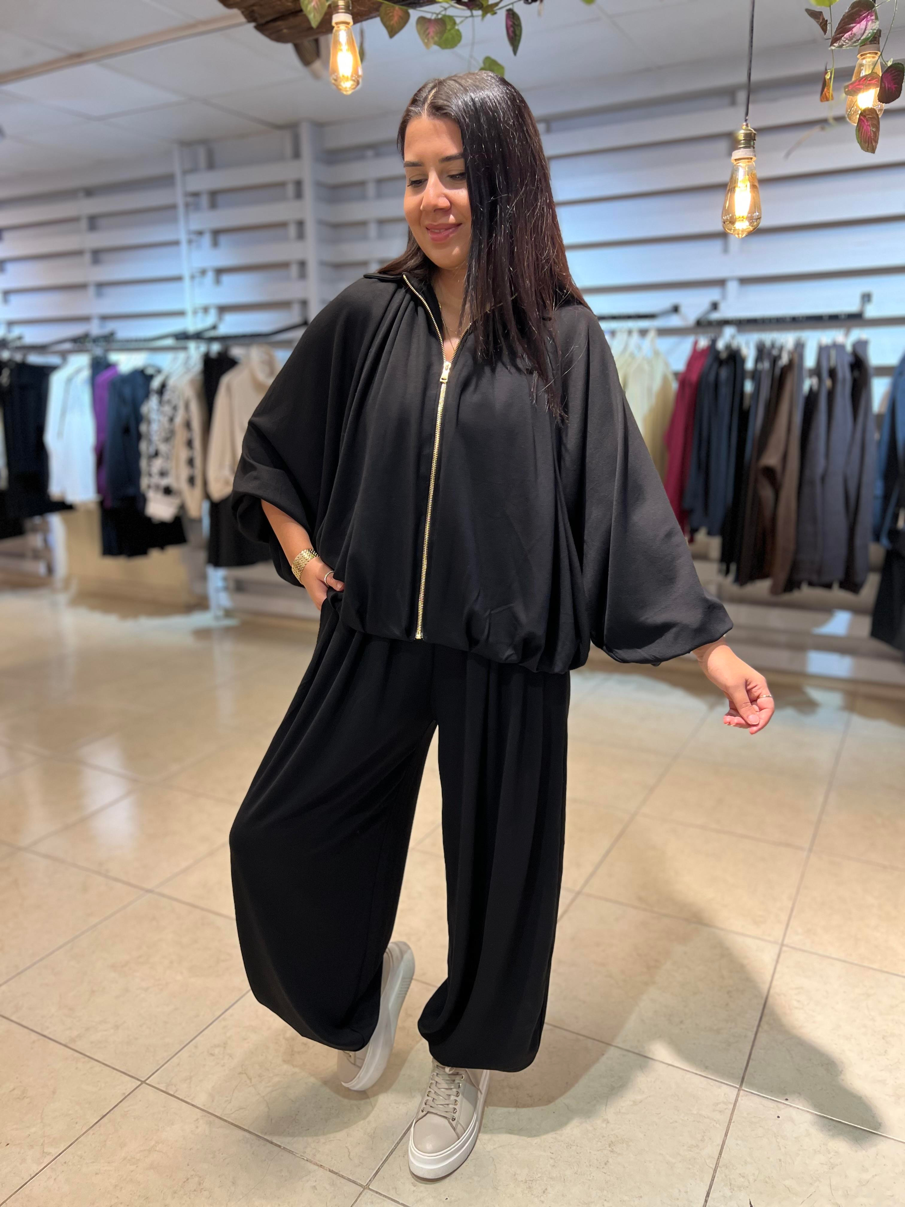 Modal Pileli Takım Siyah