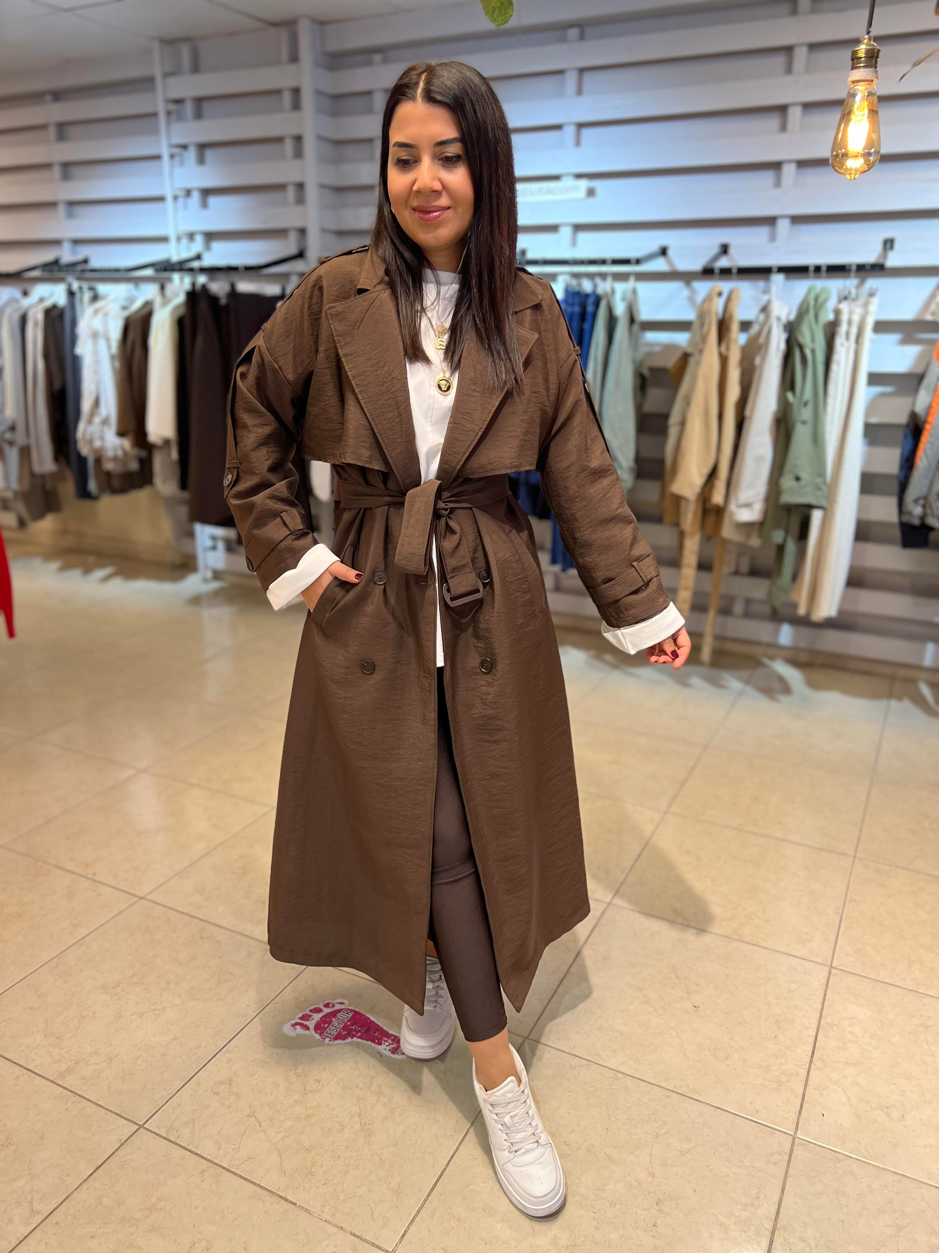Premium Apoletli Düğme Detay Trençkot Kahverengi (K220251)