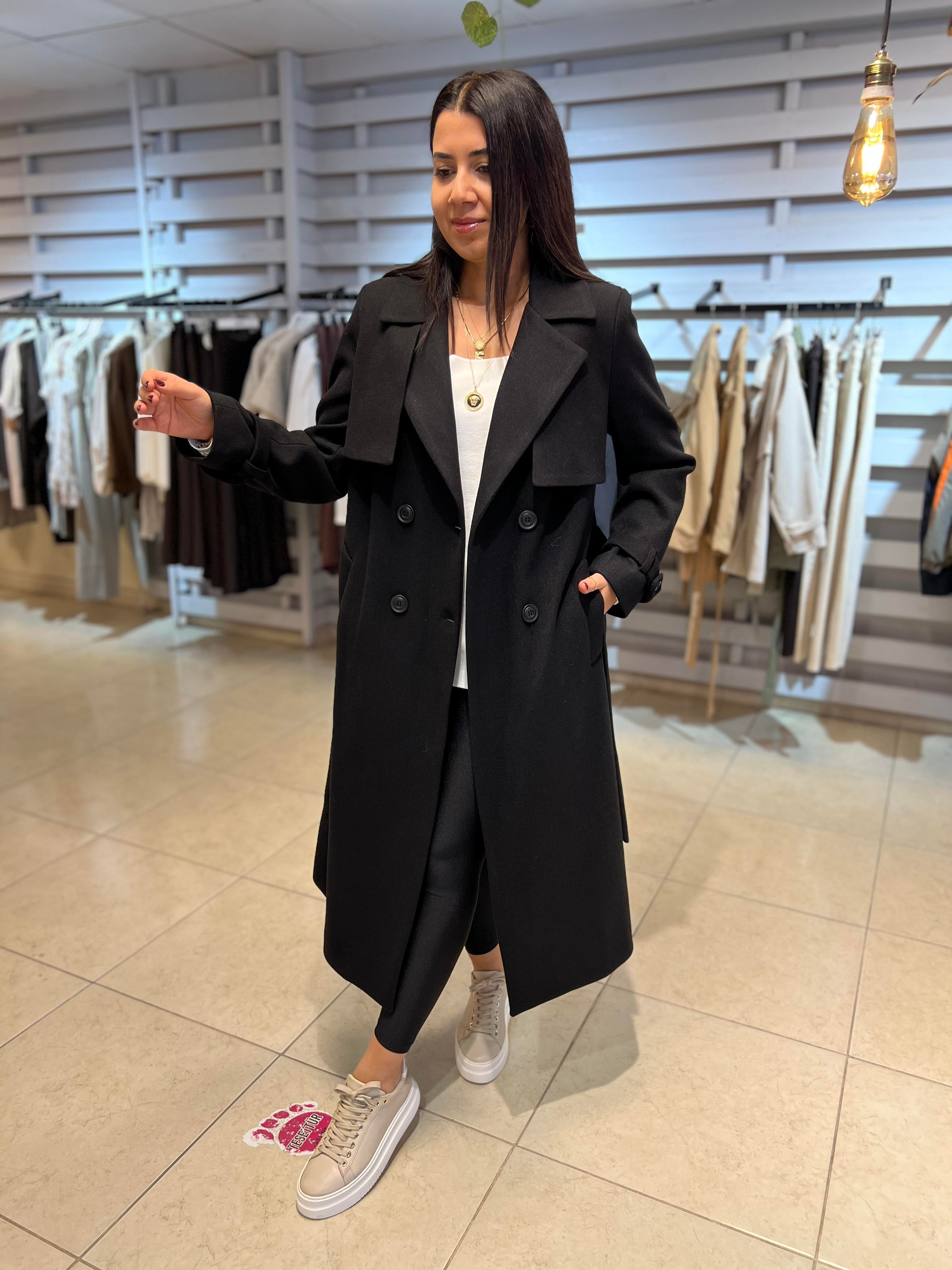 Premium Klasik Kaşe Kaban Siyah (K220252)
