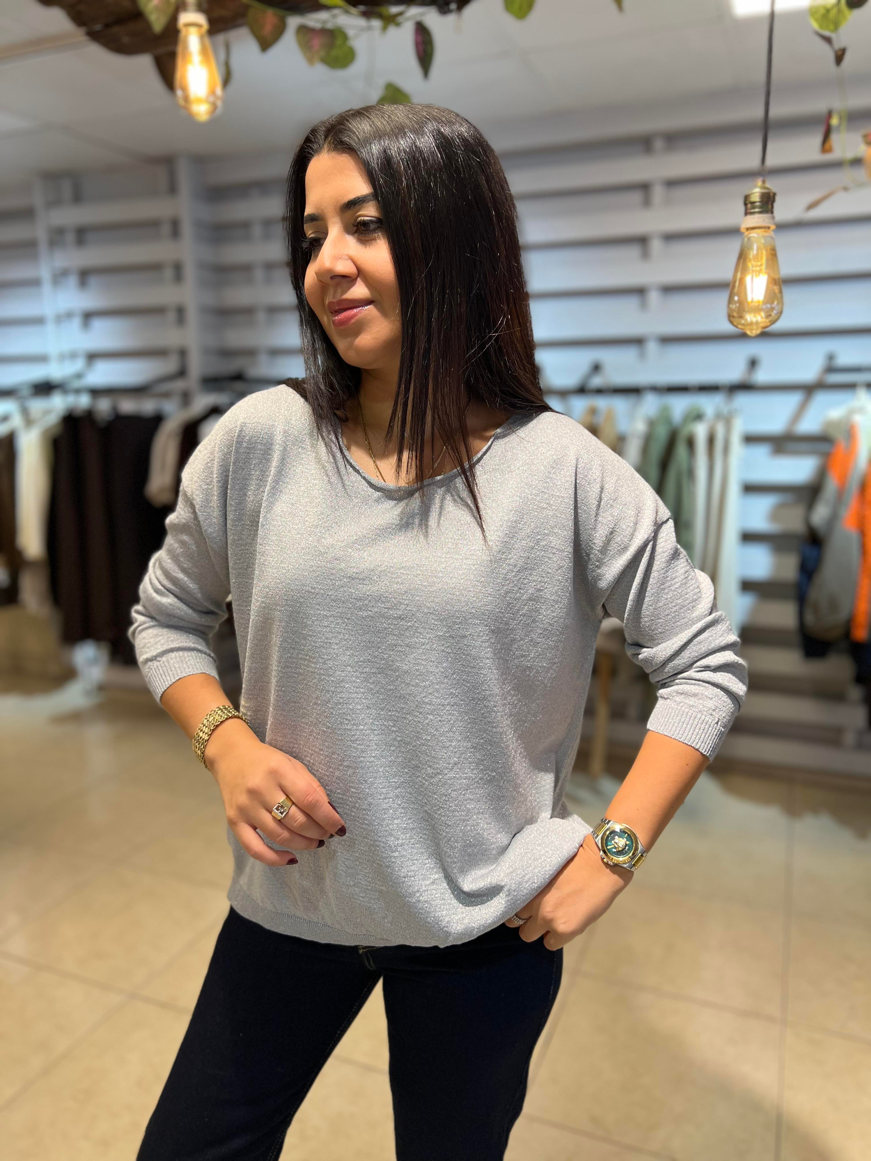 Simli Salaş Pamuk Triko Bluz Gri (K220256)