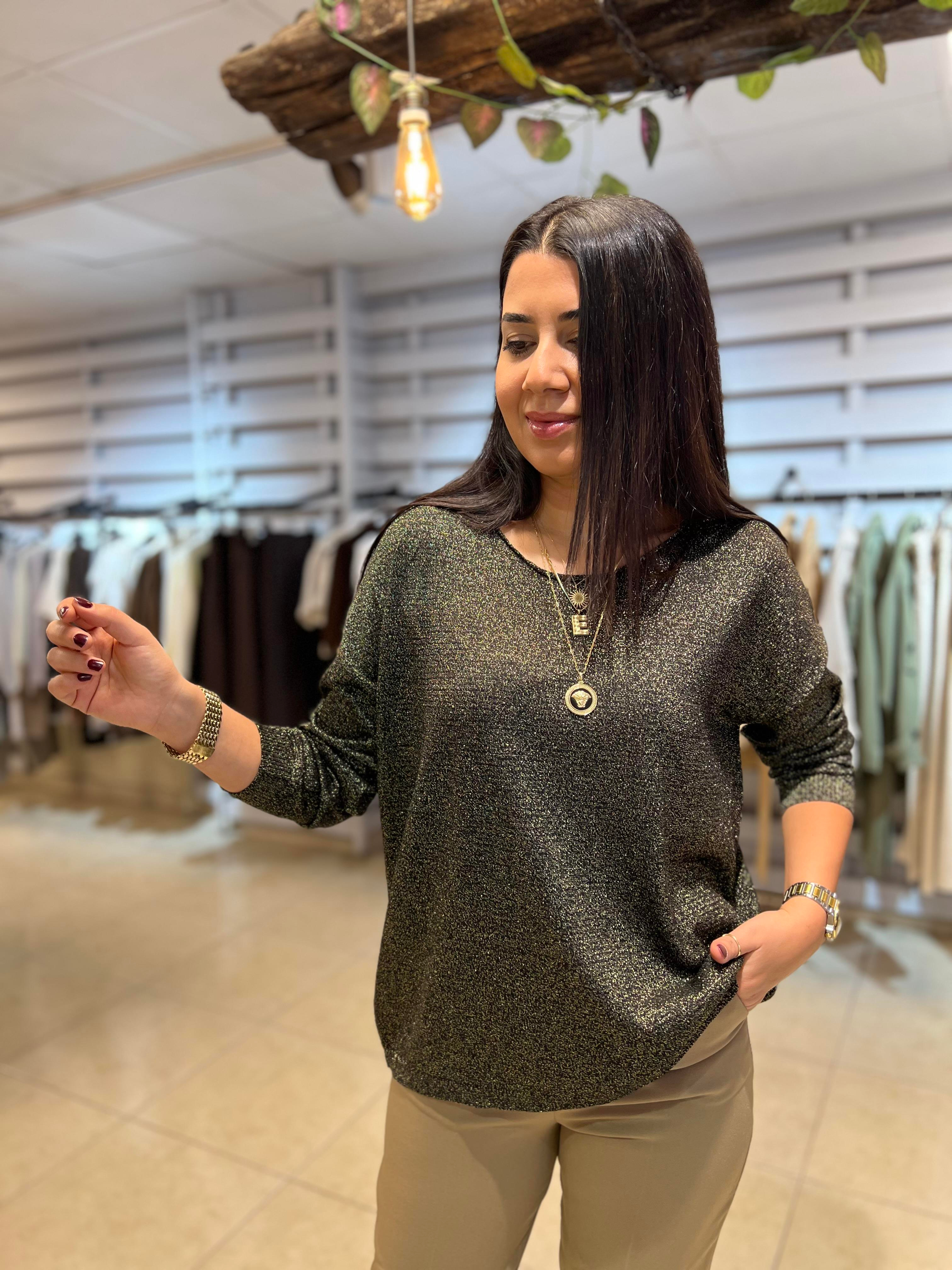Ürün Kodu: K220256 Ürün adı: Simli Salaş Pamuk Triko Bluz
