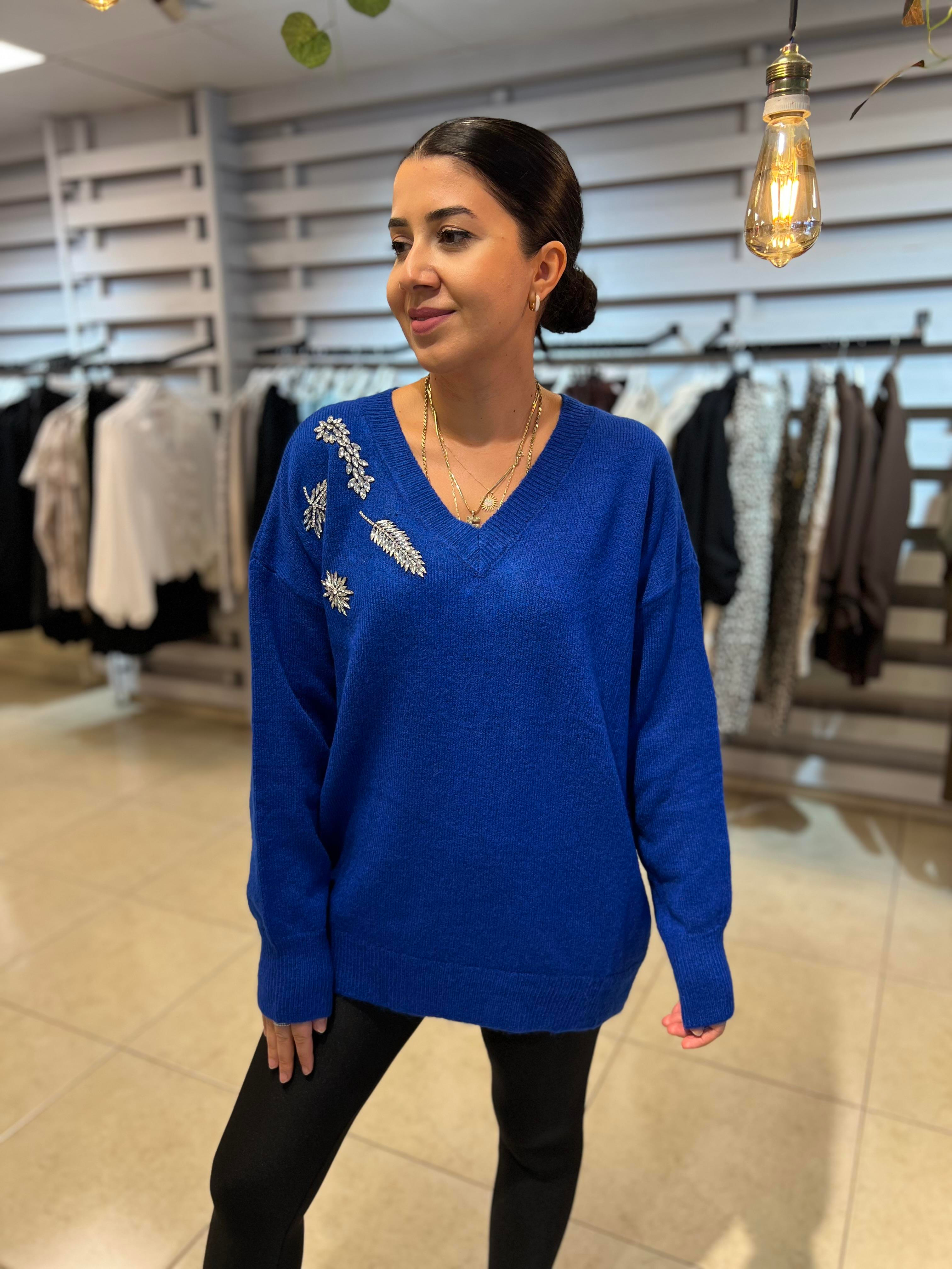 Taşlı V Yaka Salaş Kazak Kırmızı Taşlı V Yaka Salaş Kazak Gri Taşlı V Yaka Salaş Kazak Kahverengi Taşlı V Yaka Salaş Kazak Saks