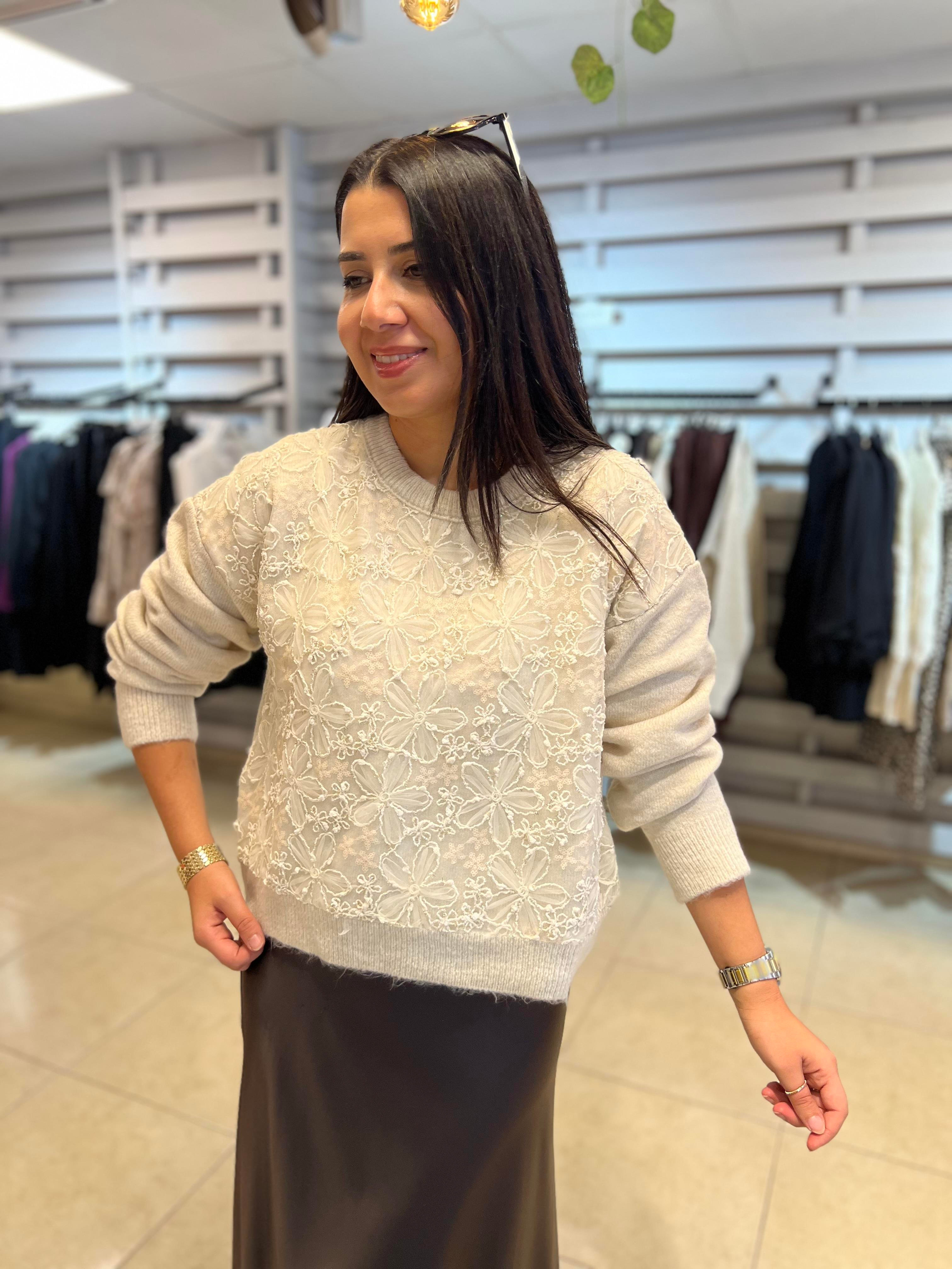 Tül Detay Triko Kazak Gri Tül Detay Triko Kazak Ekru Tül Detay Triko Kazak Taş