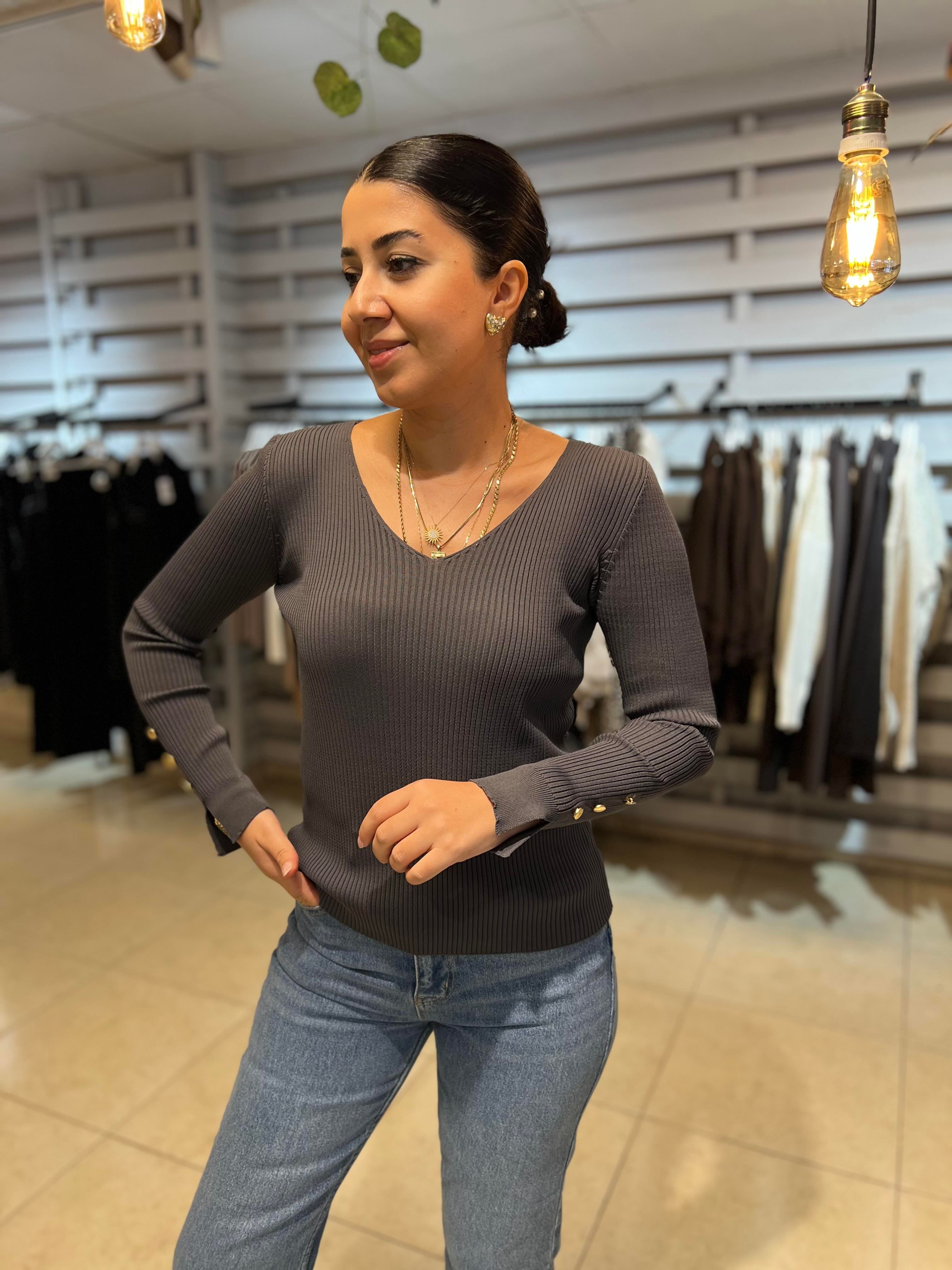 Ürün Kodu: K220244 Ürün adı: V Yaka Gold Düğmeli Triko Bluz