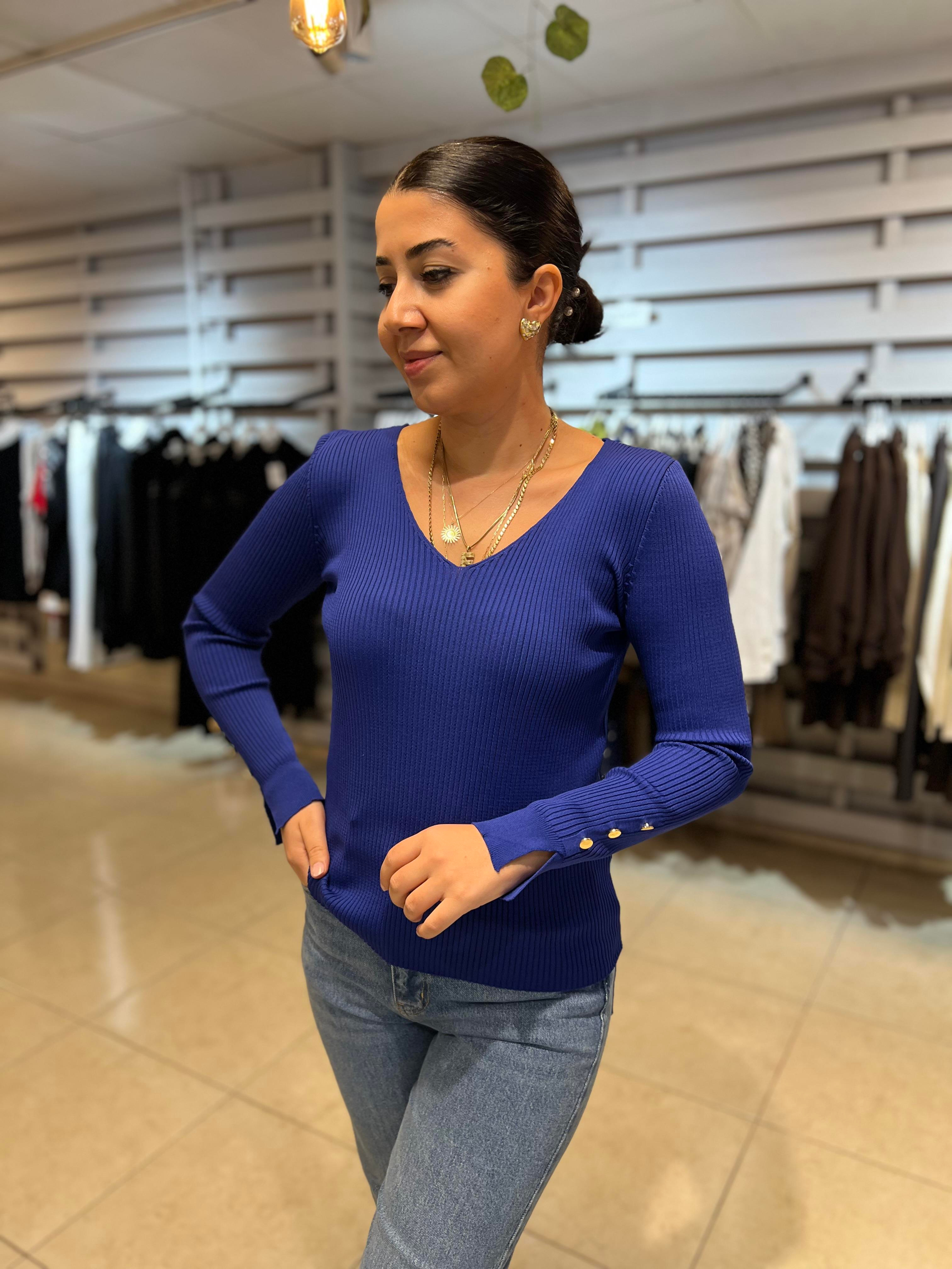 Ürün adı: V Yaka Gold Düğmeli Triko Bluz